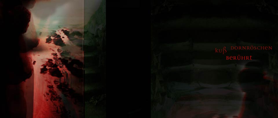 Da ging er weiter und sah im Saale den ganzen Hofstaat liegen und schlafen, und oben bei dem Throne lag der König und die Königin. Da ging er noch weiter, und alles war so still, daß einer seinen Atem hören konnte, und endlich kam er zu dem Turm und öffnete die Türe zu der kleinen Stube, in welcher Dornröschen schlief. Da lag es und war so schön, daß er die Augen nicht abwenden konnte, und er bückte sich und gab ihm einen Kuß. Wie er es mit dem Kuß berührt hatte, schlug Dornröschen die Augen auf, erwachte und blickte ihn ganz freundlich an.